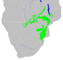 The ecoregion is characterized by the mopane tree (Colophospermum mopane), and extends across portions of Botswana, Malawi, Mozambique, Namibia, South Africa, Swaziland, Zambia, and Zimbabwe, including the lower basin of the Zambezi River. It is generally at a lower elevation, and has lower rainfall, than the neighboring Central Zambezian miombo woodlands, Eastern miombo woodlands, and Southern miombo woodlands, which occupy the higher plateaus and escarpments. It is bounded to the southwest by the Drakensberg Range and Southern African Bushveld and Drakensberg montane grassland, woodland, and forest ecoregions. To the east, it transitions to the drier Zambezian baikiaea woodlands and Kalahari Acacia-Baikiaea woodlands on the Kalahari sands. The more humid Southern Zanzibar-Inhambane coastal forest mosaic and Maputaland coastal forest mosaic ecoregions lie between the Zambezian and mopane woodlands and the Indian Ocean.